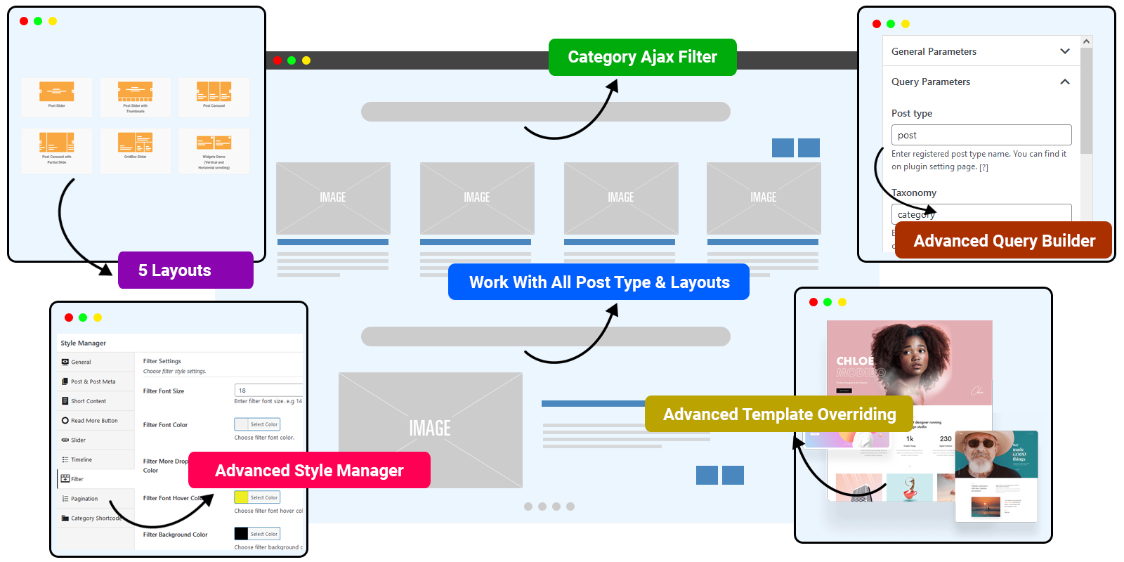 Create unlimited layouts with more than 30+ predefined designs includes Post Sliders, Post Carousel, GridBox Slider, Partially Sliders and many more…